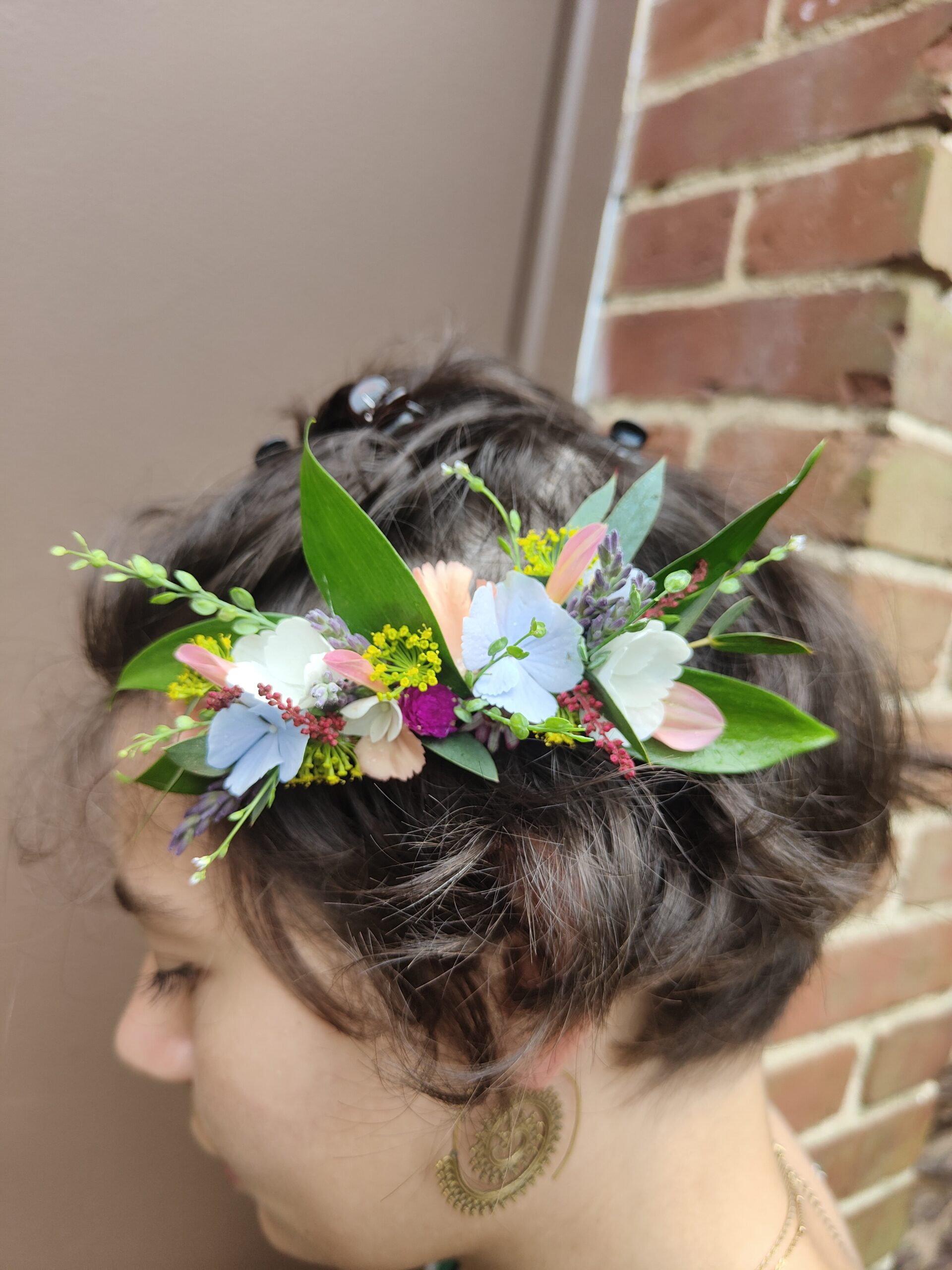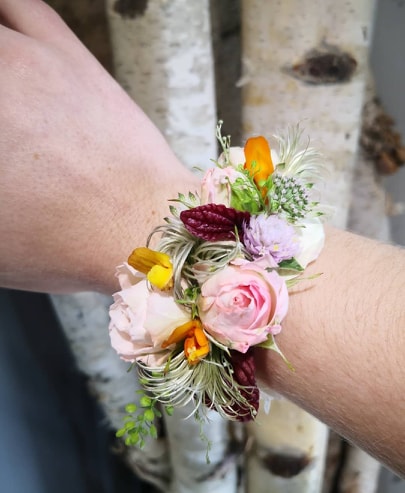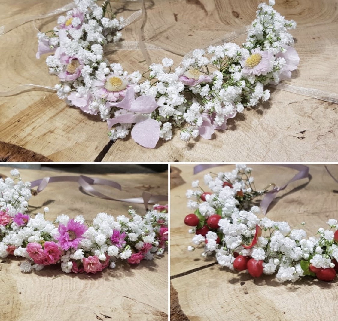Nous réalisons des compositions personnalisées pour les mariés (bouquet de la mariée, boutonnière pour un costume), mais aussi pour leurs proches ou pour le cortège d’honneur. En plus des incontournables bouquets et boutonnières, nous créons des accessoires floraux (couronne de fleurs, bracelet, peigne…) pour embellir toutes les tenues.