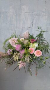 Naturellement Fleurs s’approvisionne, lorsque c’est possible, en fleurs locales et de saison. Nous travaillons avec des producteurs français, notamment de Bretagne, de Mayenne et du Vars. Même s’il est encore difficile de proposer uniquement des fleurs locales, travailler des fleurs de saison et apporter une conscience écologique à notre métier de fleuriste est un élément fort dans nos valeurs et dans notre pratique.