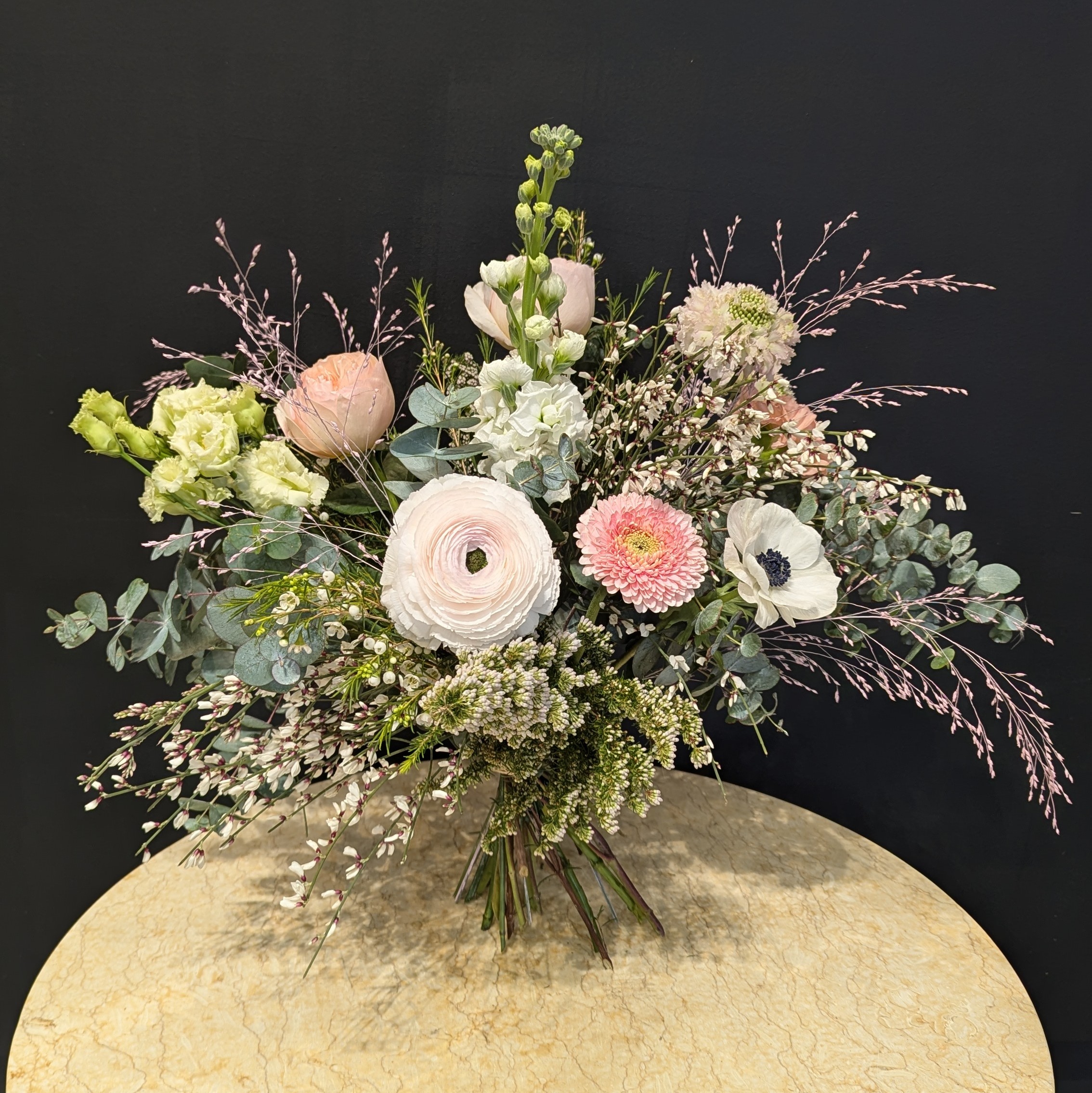 Un bouquet aux teintes pastel rose/pêche, composé avec amour par notre équipe