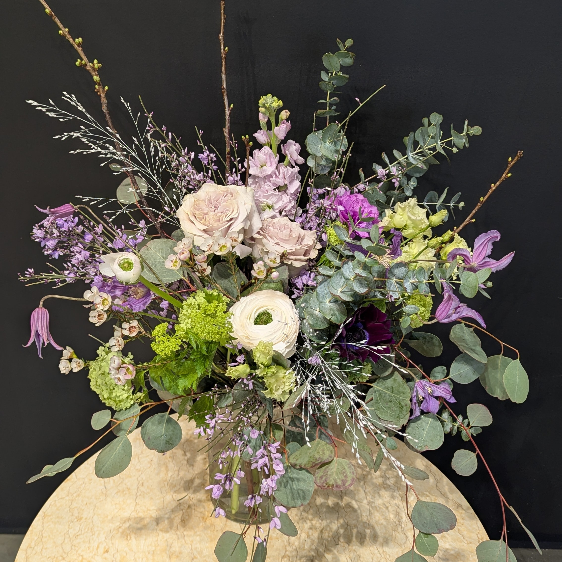Un bouquet aux teintes douces et parme, composé avec amour par notre équipe